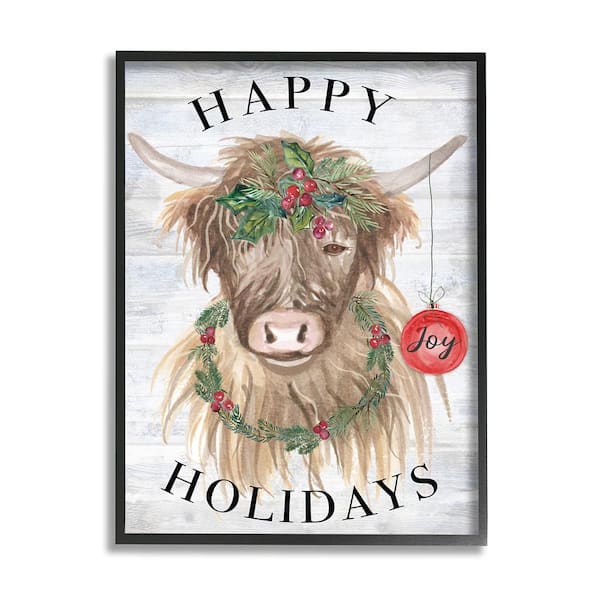 Farmhouse Holiday Cow by Corinne Haig 1 Piece Framed Graphic Print Animal Poster Art Print 30 in. x 24 in.