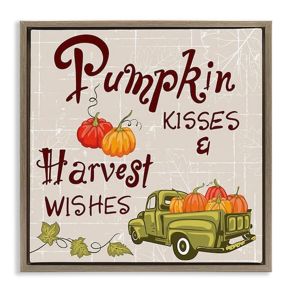 Farmhouse Pumpkin Kisses by Diane Labombarbe 1-Piece Floater Frame Graphic Print Typography Art Print 25 in. x 25 in.
