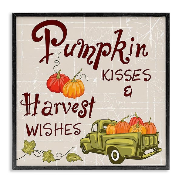 Farmhouse Pumpkin Kisses by Diane Labombarbe 1 Piece Framed Graphic Print Typography Poster Art Print 24 in. x 24 in.