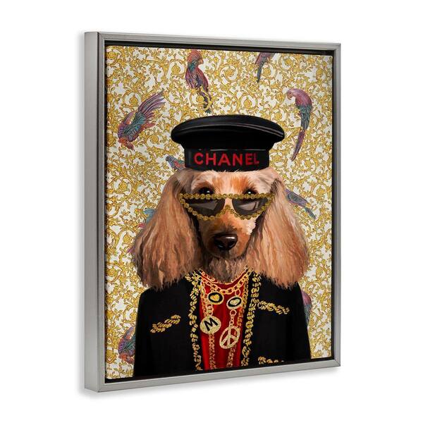 Fashion Brand Dog by Svetlana Aleynikova Gray Floater Frame Animal Graphic Art Print 21 in. x 17 in.