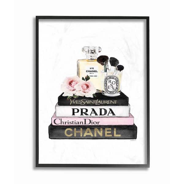 "Fashion Designer Flower Makeup Bookstack Black Pink Watercolor" by Amanda Greenwood Framed Wall Art 14 in. x 11 in.