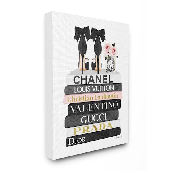 "Fashion Designer Flower Shoes Bookstack Pink Black Watercolor " by Amanda Greenwood Canvas Wall Art 16 in. x 20 in.