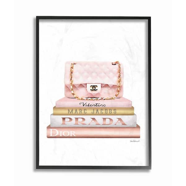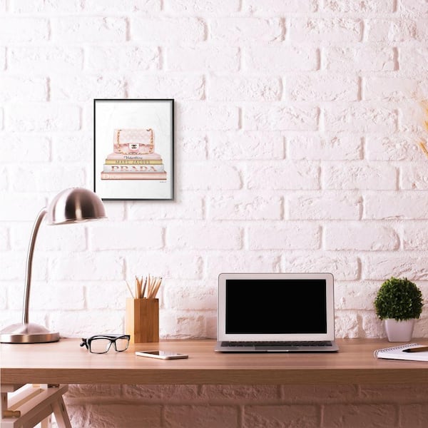 "Fashion Designer Purse Bookstack Pink White Gold Watercolor "Amanda GreenwoodFramed Abstract Wall Art 14 in. x 11 in.