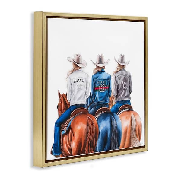 Fashion Trend Cowgirls by Amanda Greenwood Gold Floater Frame People Graphic Art Print 25 in. x 25 in.