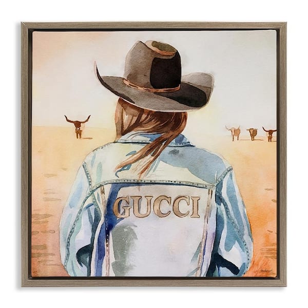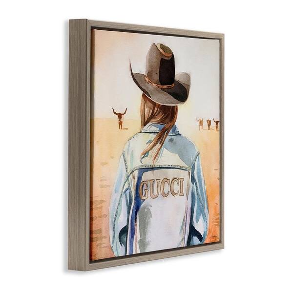 Fashionable Desert Cowgirl by Amanda Greenwood Brown Floater Frame People Graphic Art Print 18 in. x 18 in.