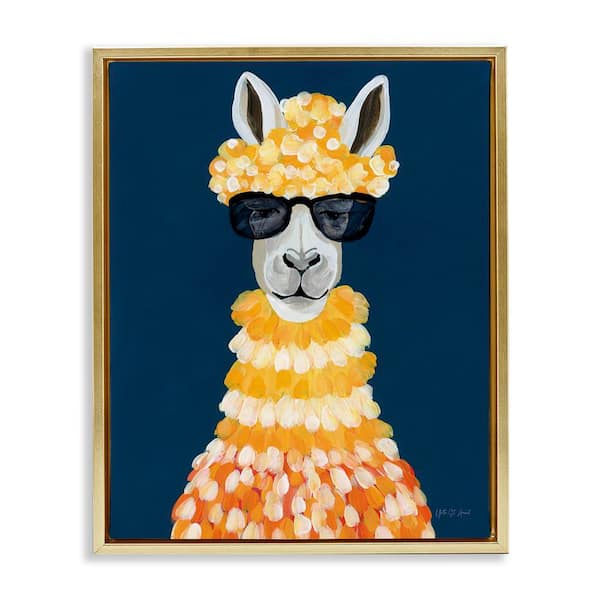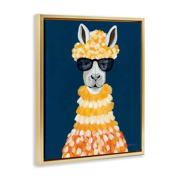 Fashionista Alpaca Portrait by Yvette St. Amant Gold Floater Frame Animal Graphic Art Print 31 in. x 25 in.
