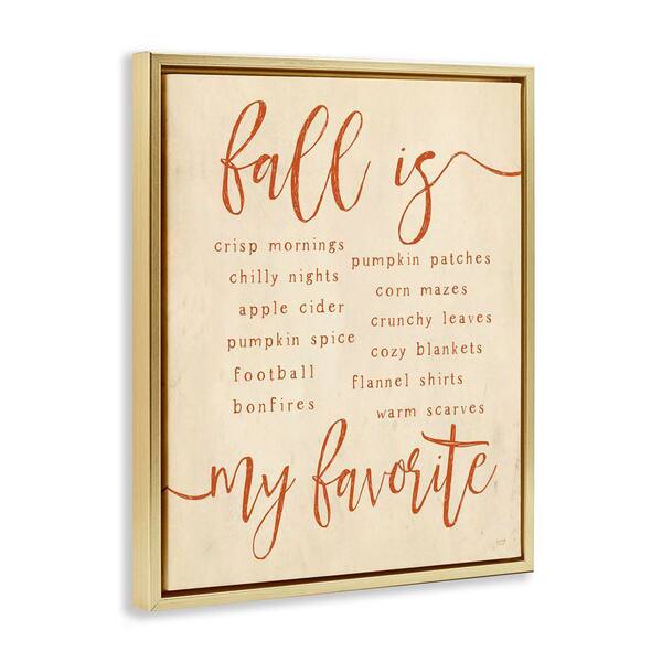 Favorite Fall Activities by Lux plus Me Designs Gold Floater Frame Graphic Typography Art Print 17 in. x 21 in.