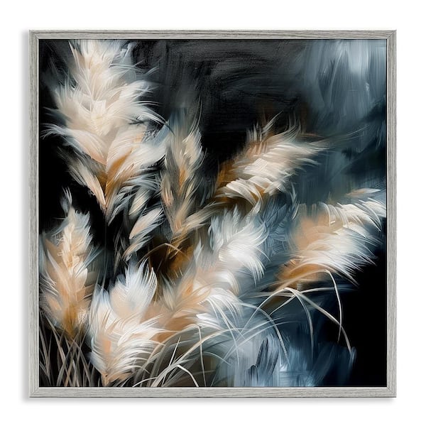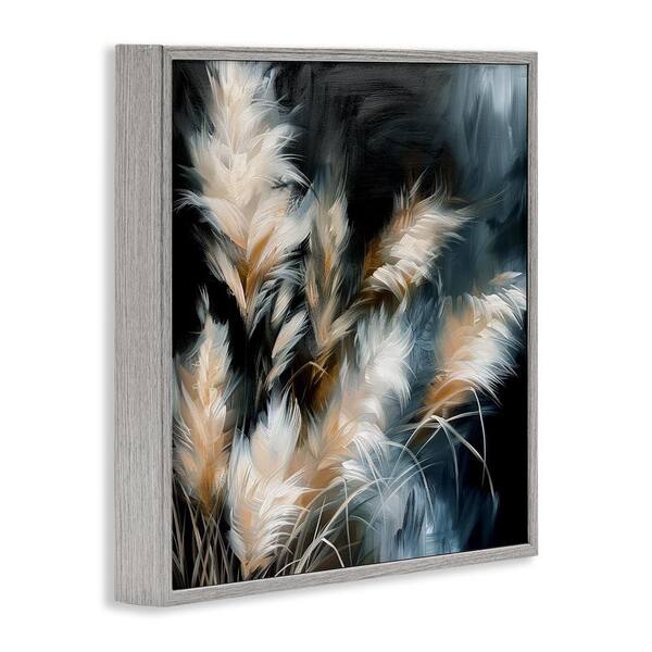 Feathery Windblown Wheat by Raymond Powers Gray Framed Nature Giclee Art Print 12 in. x 12 in.