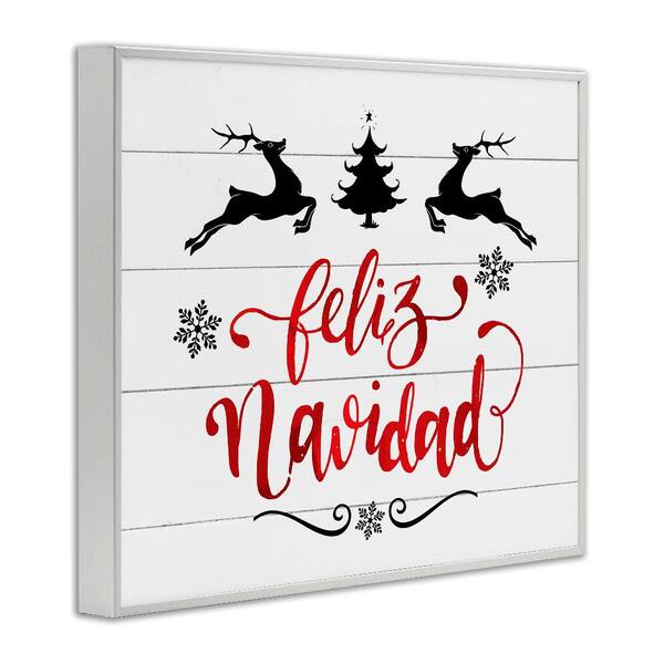 Feliz Navidad Holiday Reindeer by Lettered and Lined White Framed Abstract Giclee Art Print 24 in. x 30 in.