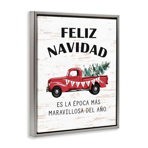 Feliz Navidad Red Truck Xmas by Lettered and Lined Gray Floater Frame Abstract Graphic Art Print 31 in. x 25 in.
