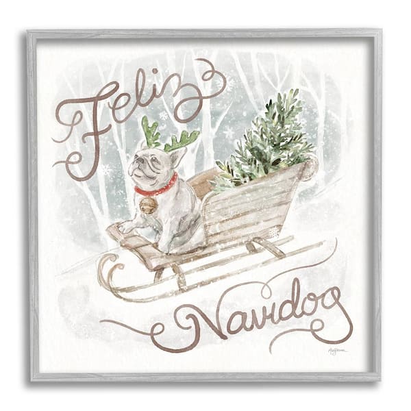 Feliz Navidog Bulldog by Mary Urban 1-Piece Framed Graphic Print Animal Poster Art Print 12 in. x 12 in.