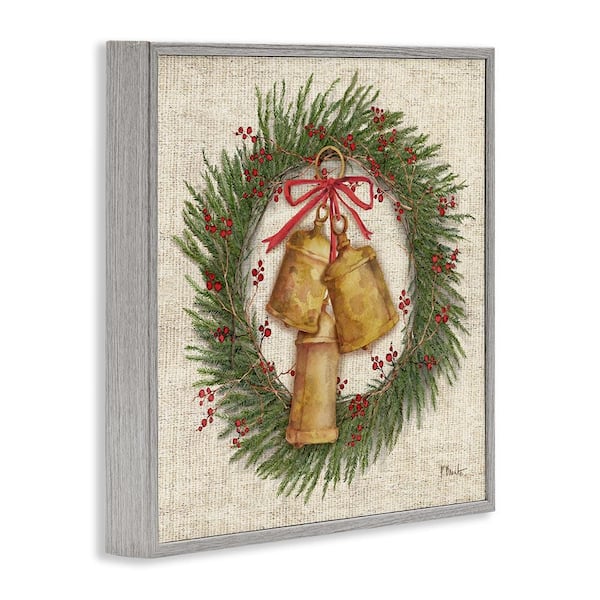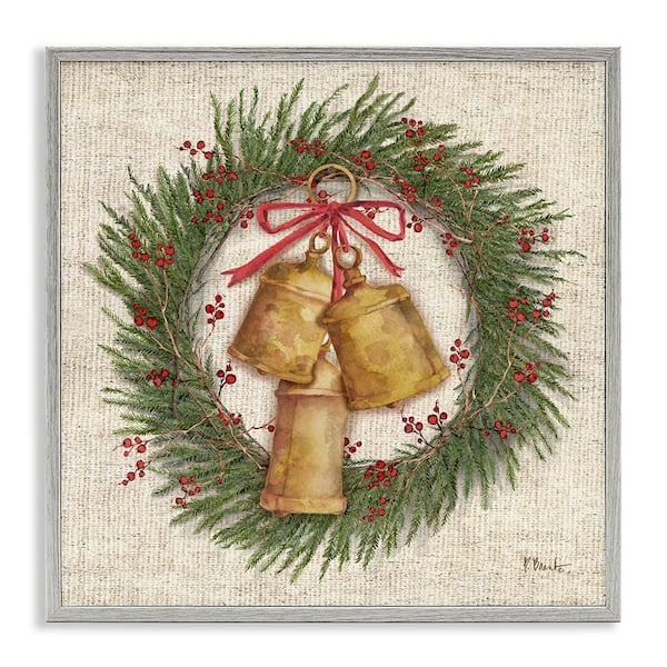 Festive Bells Wreath by Paul Brent Gray Framed Nature Giclee Art Print 24 in. x 24 in.