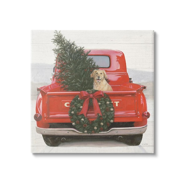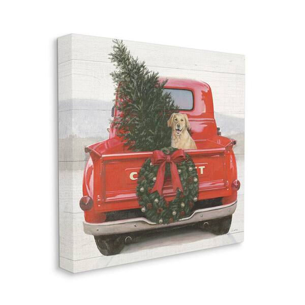 Festive Dog in Truck byJames Wiens 1 Piece Unframed Graphic Print Travel Poster Art Print 30 in. x 30 in.
