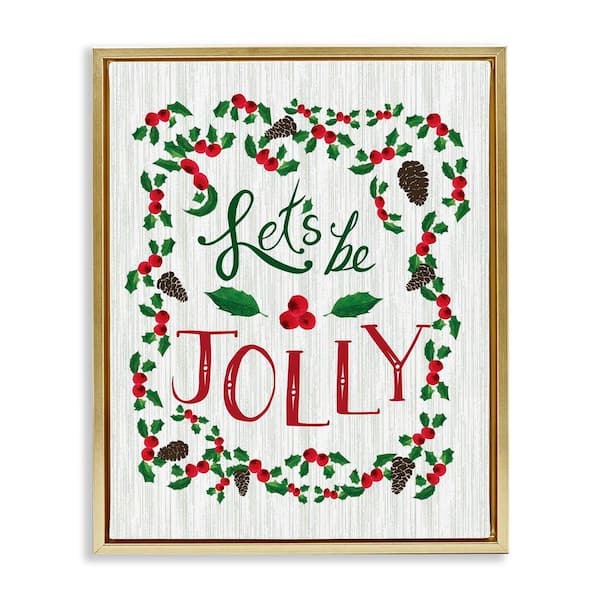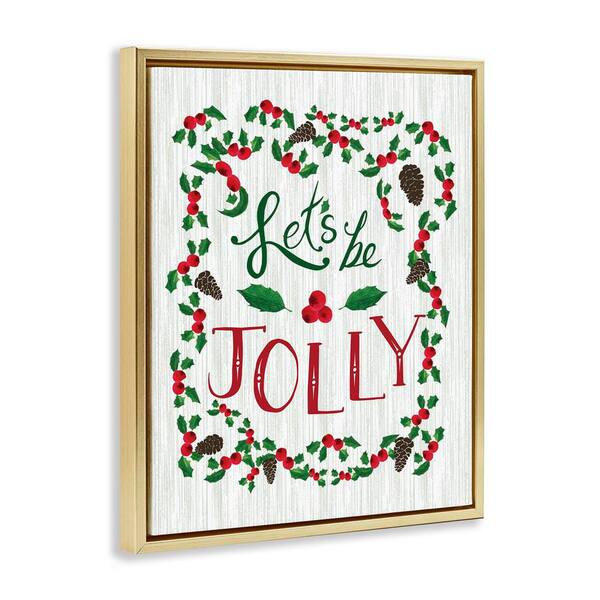 Festive Let's Be Jolly by Michelle Ingari Designs Gold Floater Frame Typography Graphic Art Print 21 in. x 17 in.