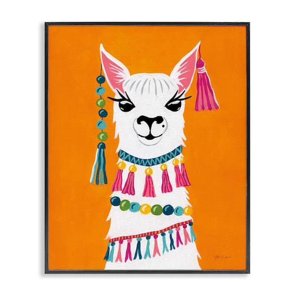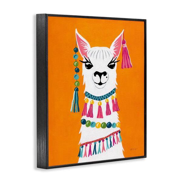 Festive Llama Portrait by Yvette St. Amant Black Framed Animal Giclee Art Print 30 in. x 24 in.