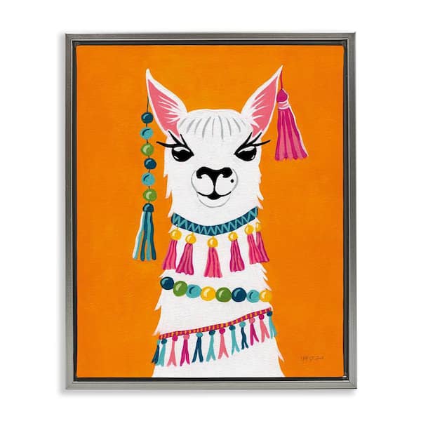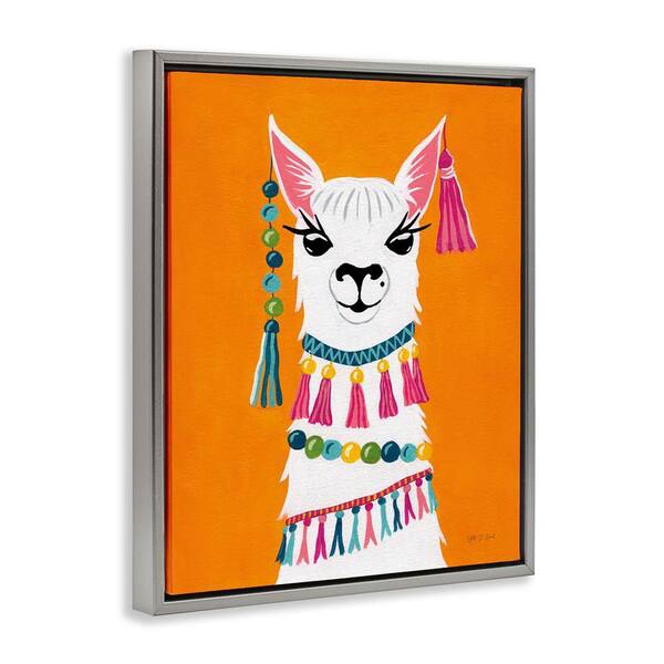 Festive Llama Portrait by Yvette St. Amant Gray Floater Frame Animal Graphic Art Print 31 in. x 25 in.