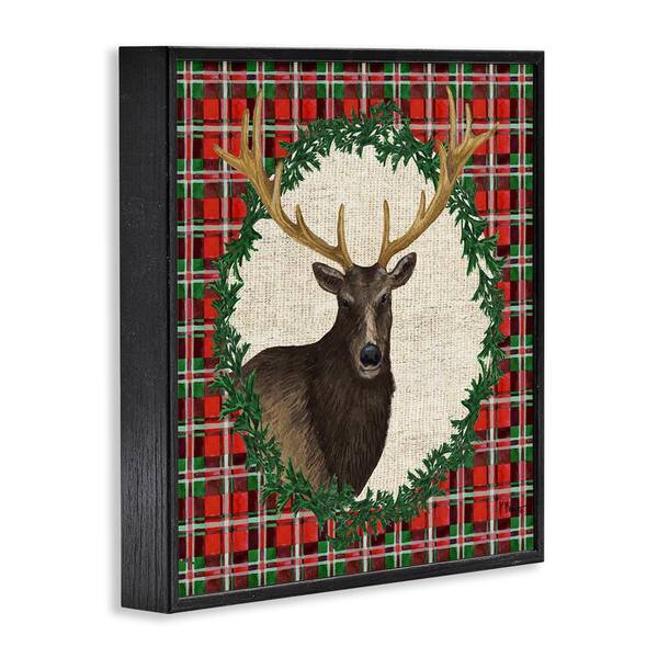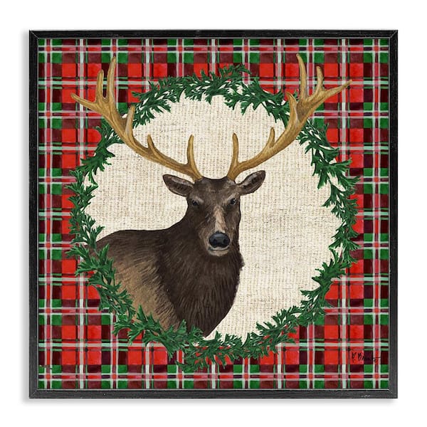 Festive Plaid Elk by Paul Brent Black Framed Animal Giclee Art Print 24 in. x 24 in.