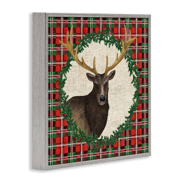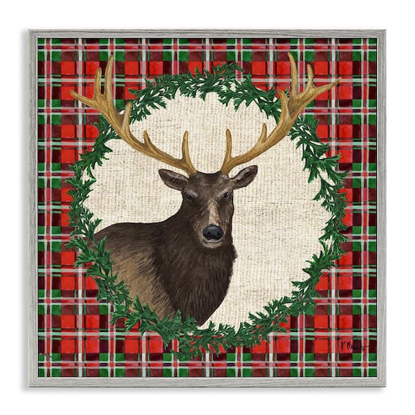 Festive Plaid Elk by Paul Brent Gray Framed Animal Giclee Art Print 12 in. x 12 in.