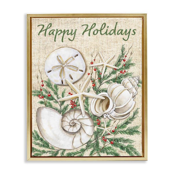 Festive Seashells and Holly by Paul Brent Gold Floater Frame Typography Graphic Art Print 21 in. x 17 in.