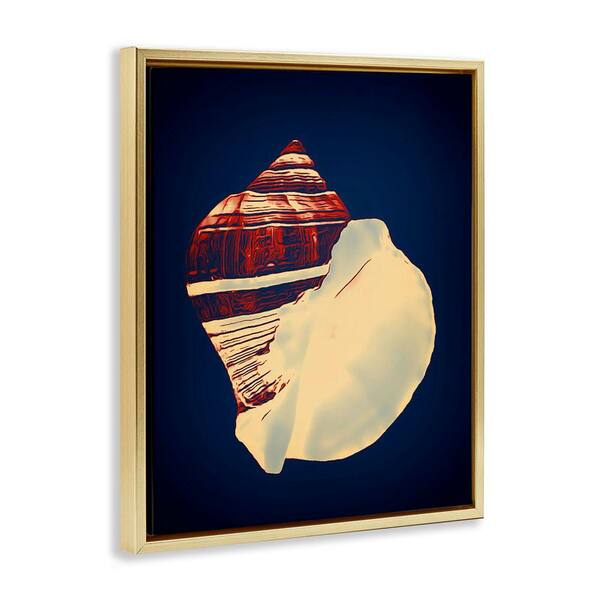 Fiber Conch on Blue by Graffi tee Studios Gold Floater Frame Coastal Graphic Art Print 21 in. x 17 in.