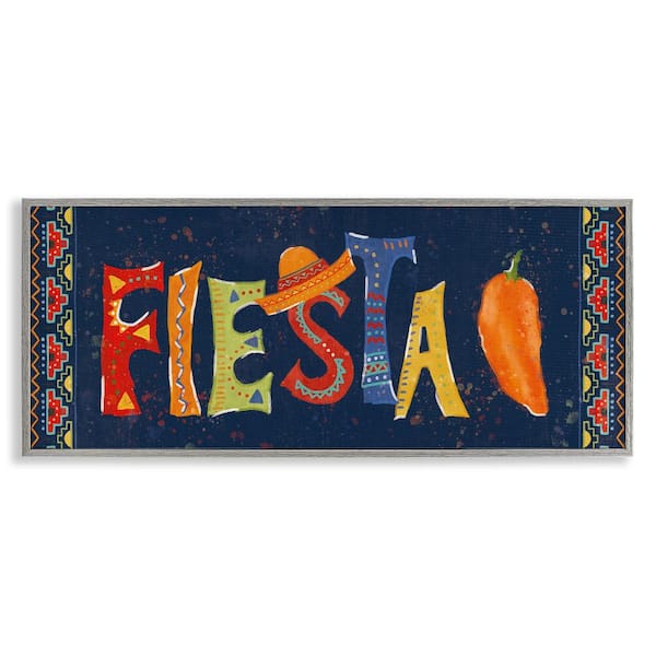 Fiesta with Spicy Pepper by Veronique Charron Gray Framed Food Giclee Art Print 13 in. x 30 in.