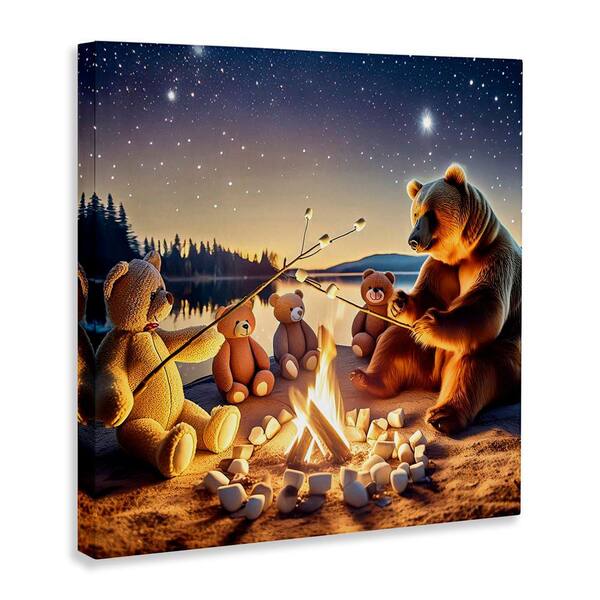 Fireside Friends Bear by Alina Georgescu Unframed Animal Graphic Art Print 36 in. x 36 in.