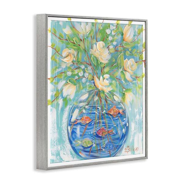Fish Bowl Bouquet by Estelle Grengs Gray Framed Nature Giclee Art Print 14 in. x 11 in.