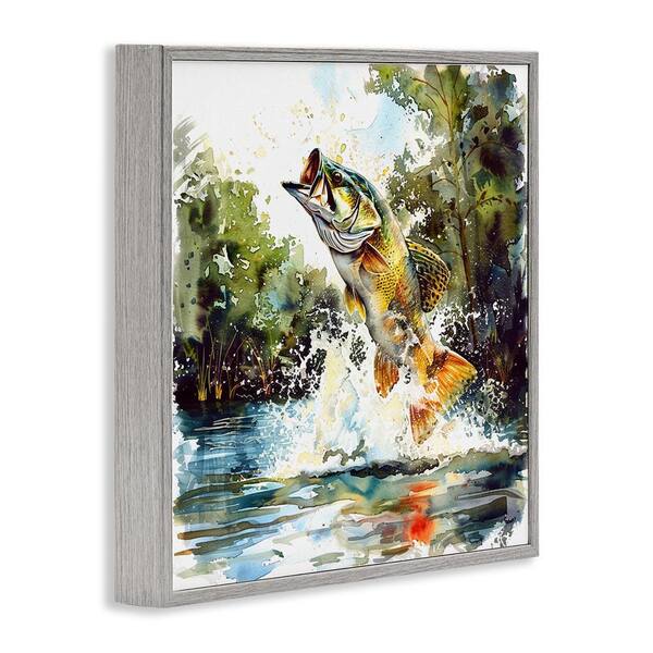 Fish Jumping Splash by LSR Design Studio Gray Framed Animal Giclee Art Print 17 in. x 17 in.