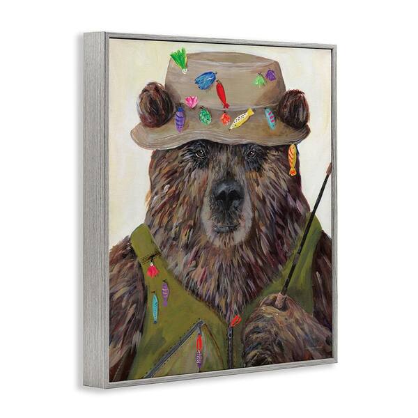 Fisherman Outfit Grizzly Bear Fishing by Kamdon Kreations 1-Piece Gray Framed Animal Giclee Art Print 16 in. x 20 in.