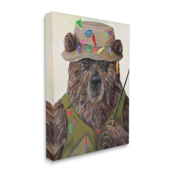 Fisherman Outfit Grizzly Bear by Kamdon Kreations 1-Piece Wrapped Unframed Animal Graphic Art Print 36 in. x 48 in.