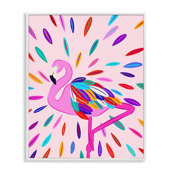 Flamingo Feather Flair by Catalina Aguirre White Framed Animal Giclee Art Print 30 in. x 24 in.