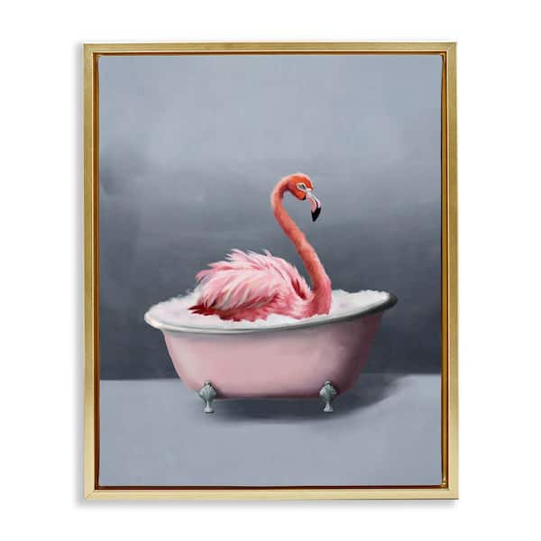 Flamingo in Bathtub by Svetlana Aleynikova Gold Floater Frame Animal Graphic Art Print 21 in. x 17 in.