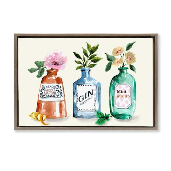 Floral Alcohol Bottles by Kate Eldridge Brown Floater Frame Food Graphic Art Print 21 in. x 31 in.