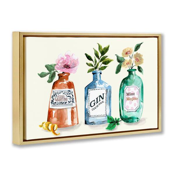Floral Alcohol Bottles by Kate Eldridge Gold Floater Frame Food Graphic Art Print 21 in. x 31 in.