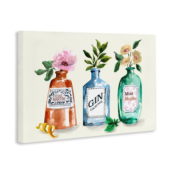Floral Alcohol Bottles by Kate Eldridge Unframed Food Graphic Art Print 24 in. x 36 in.