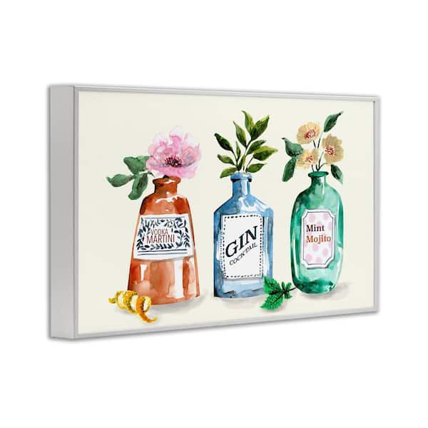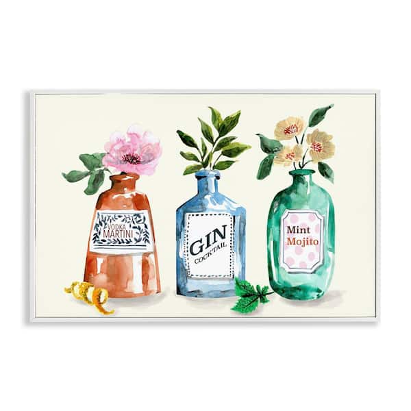 Floral Alcohol Bottles by Kate Eldridge White Framed Food Giclee Art Print 20 in. x 30 in.