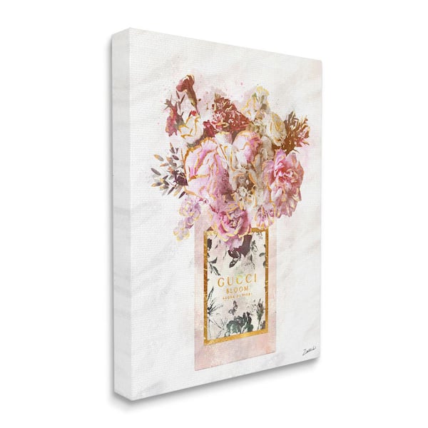 "Floral Bouquet Fashion Shopping Bag White Gold" by Ziwei Li Unframed Abstract Canvas Wall Art Print 16 in. x 20 in.