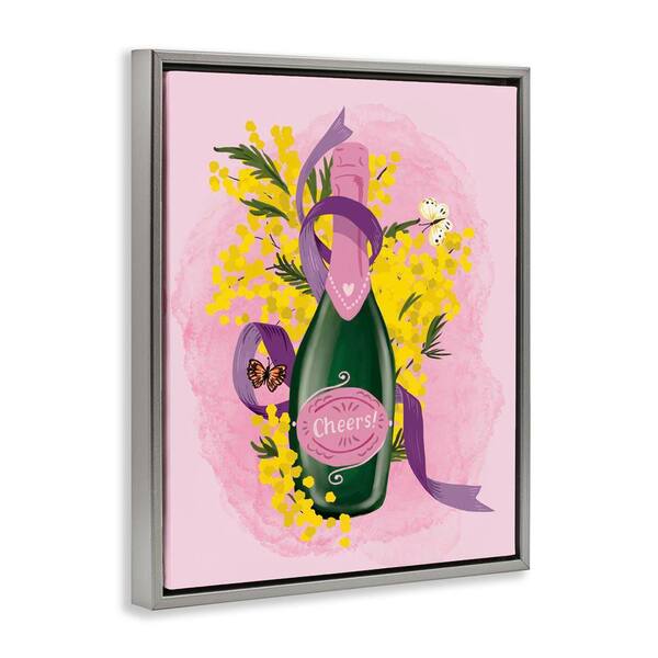Floral Champagne Bottle by Be Ni La Gray Floater Frame Food Graphic Art Print 21 in. x 17 in.