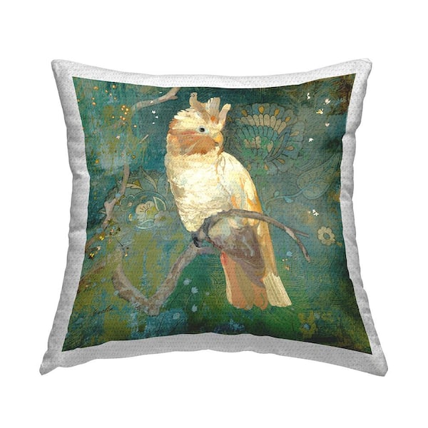 Floral Cockatoo Bird Green Square Outdoor Throw Pillow