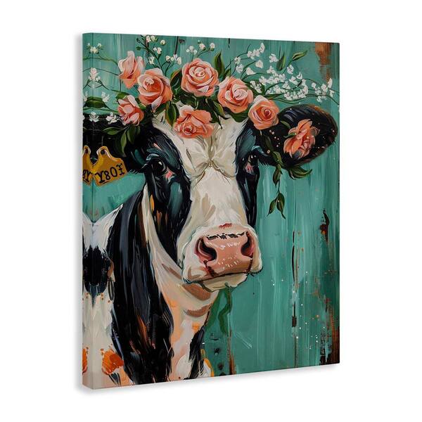 Floral Cow on teal by LSR Design Studio Unframed Animal Graphic Art Print 30 in. x 24 in.