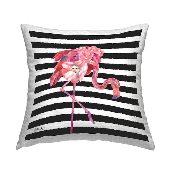 Floral Flamingo Bold Stripes Pink Square Outdoor Throw Pillow