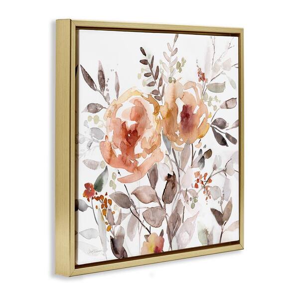 Floral Impressions on White by Carol Robinson Gold Floater Frame Nature Graphic Art Print 25 in. x 25 in.