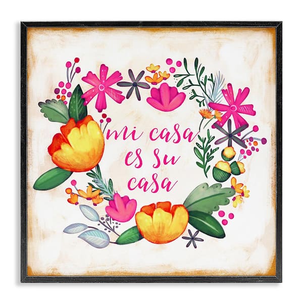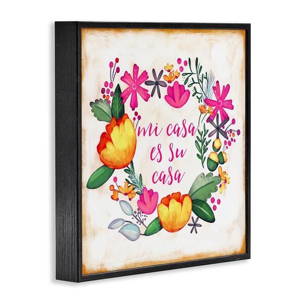 Floral My House Your House by Josefina Black Framed Typography Giclee Art Print 17 in. x 17 in.