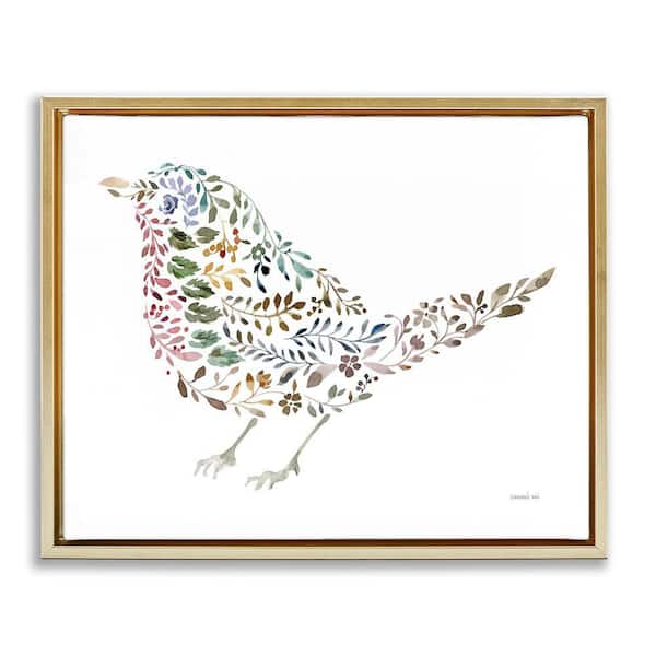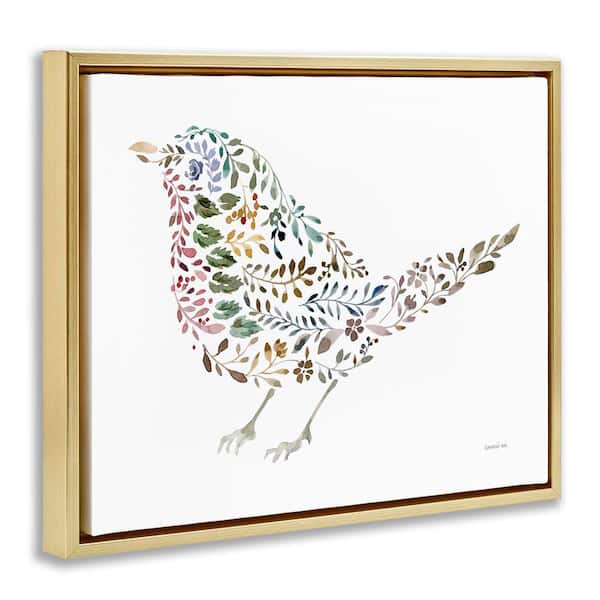 Floral Nature Bird by Danhui Nai Gold Floater Frame Animal Graphic Art Print 17 in. x 21 in.