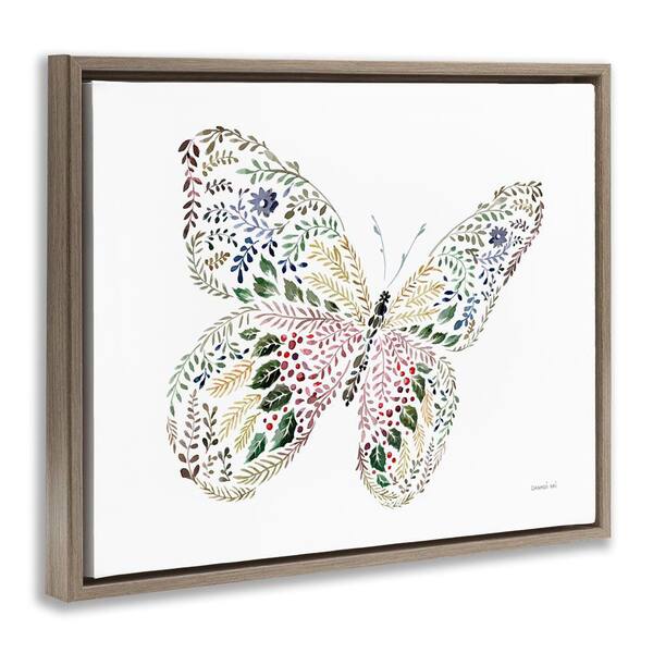 Floral Nature Butterfly by Danhui Nai Brown Floater Frame Animal Graphic Art Print 25 in. x 31 in.