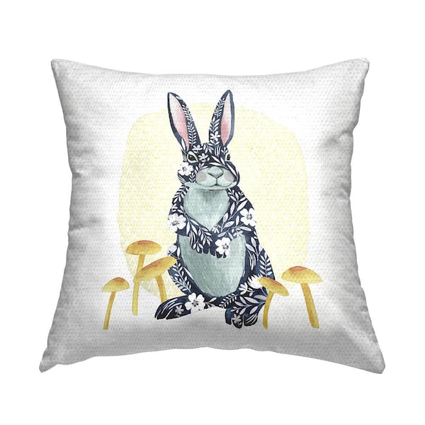 Floral Patterned Rabbit Multi-Color Square Outdoor Throw Pillow