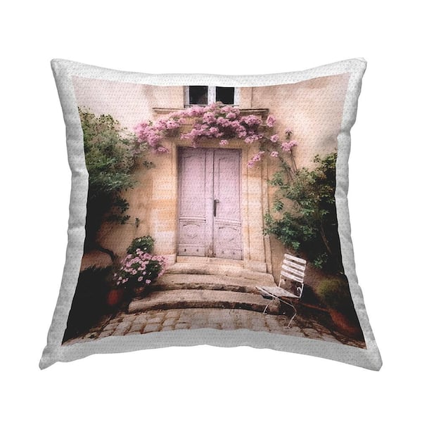 Floral Pink Door Beige Square Outdoor Throw Pillow
