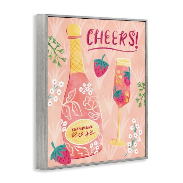 Floral Rose Champagne by Natalie Miles Gray Framed Food Giclee Art Print 14 in. x 11 in.