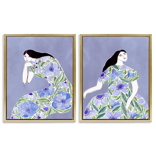 Floral Women on Purple by Melissa Wang 2 Pieces Gold Floater Frame People Graphic Art Print 31 in. x 25 in.