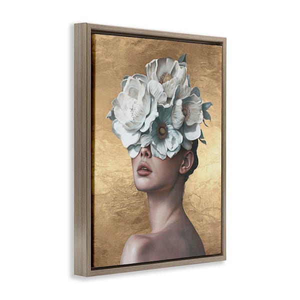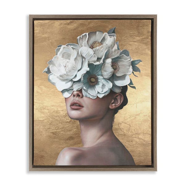 Flower Lady on Gold by Svetlana Aleynikova Brown Floater Frame People Graphic Art Print 31 in. x 25 in.